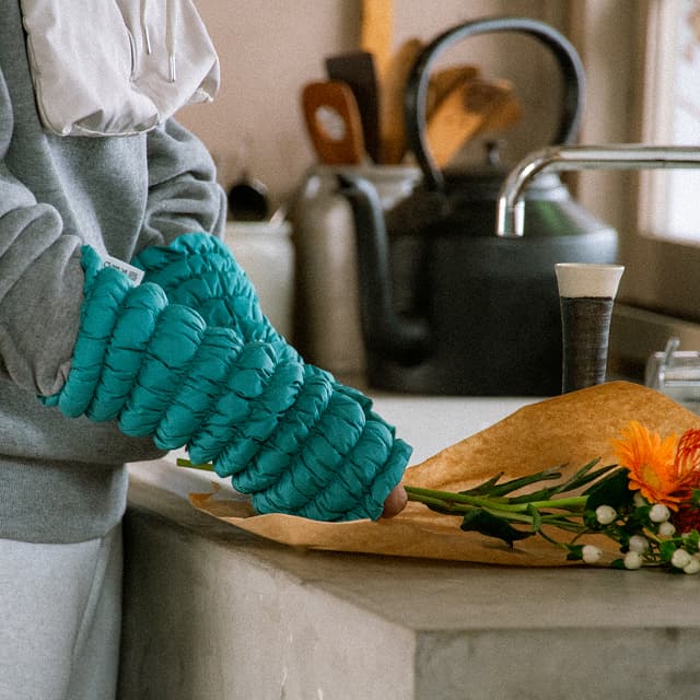 Lee:体に負荷をかけずに温めることができるのはダウンならではですよね。私は、寝る時は羽毛ふとん一枚しか使わなくて。身体への負荷を少しでも減らすために、毛布などの重たい物はなるべく使いたくないんです。最近、身体を鍛えようっていう方はすごく増えていると思うんですけど、その一方で、トレーニングの時間しかその身体にフォーカスしていない人がほとんどで、もったいないなぁと感じています。レッスンの時以外でも身体のケアにつながるダウンケットは、ピラティスをはじめ身体を鍛えている方にとってとても便利なアイテムだと思います。それに、<KWD>のプロダクトは、中に入っているダウンの品質がとても良いと聞いています。ピラティスは主に体幹やインナーマッスルを鍛えるんですけど、中身をすごく大切にしている点で、(ピラティスを)やっている方ならすごく共感できるブランドだなと感じました。人にも自信を持って薦められますね。