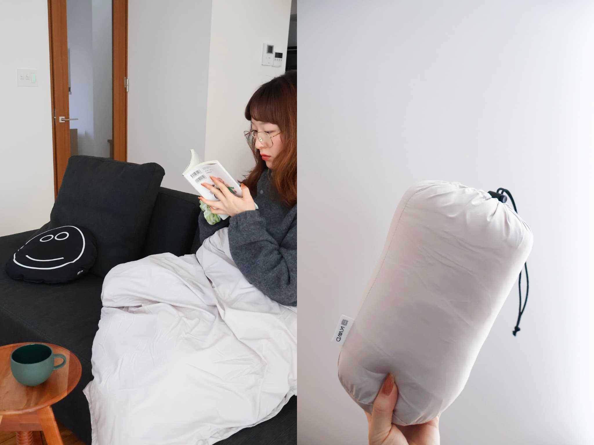 私は基本的に車に置いていて、冬場の移動のときに特に重宝していました。お昼寝をするときにも、ちょうどいいサイズ感で、あると自然と落ち着く。